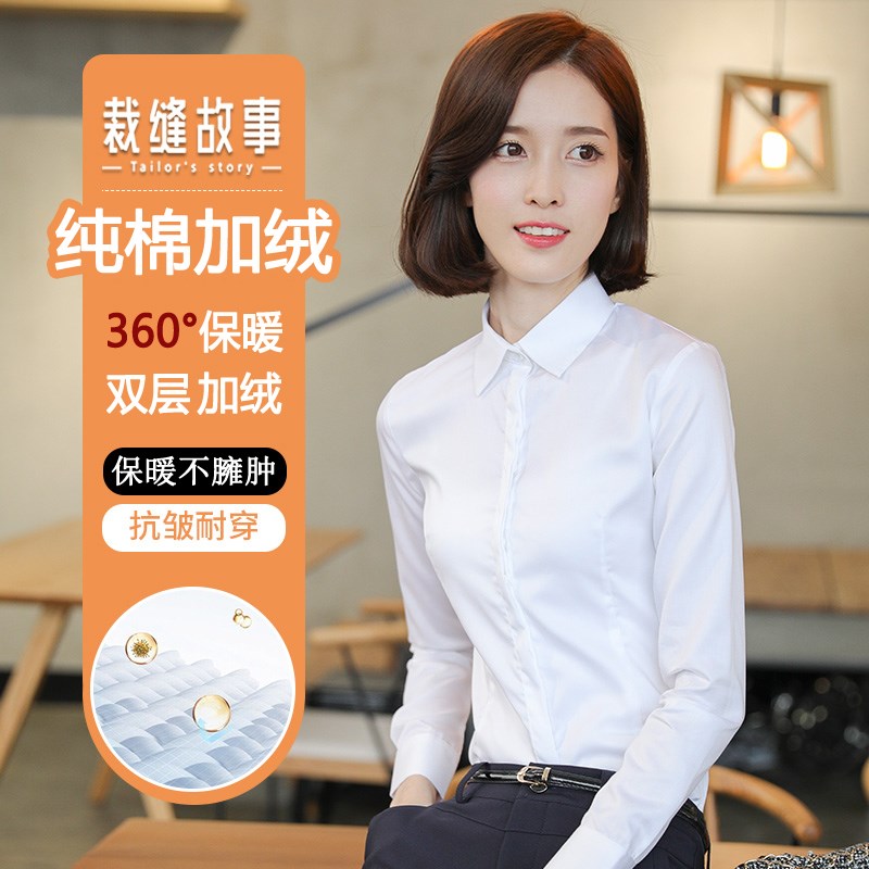 纯棉加绒白衬衫女长袖2024秋冬新款气质工装职业黑衬衣女士工作服