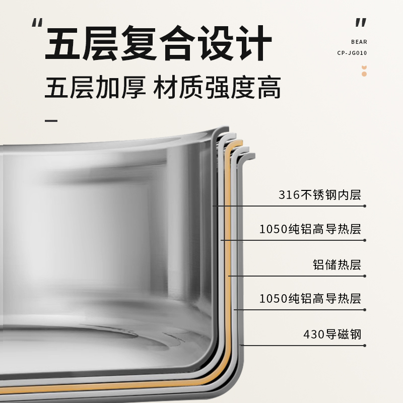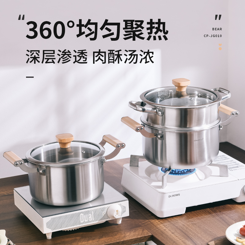 卡洛图316不锈钢汤锅五层钢加厚炖煮蒸锅煮粥双耳木柄多功能家用