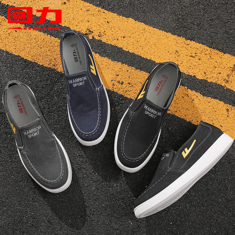 回力男鞋休闲鞋秋季透气防滑一脚蹬帆布鞋懒人板鞋老北京布鞋男款
