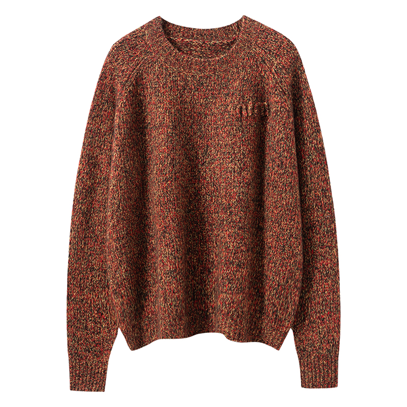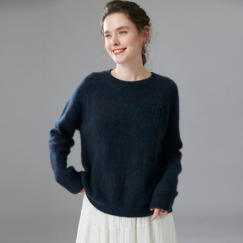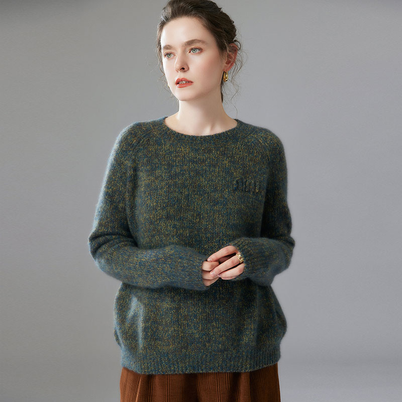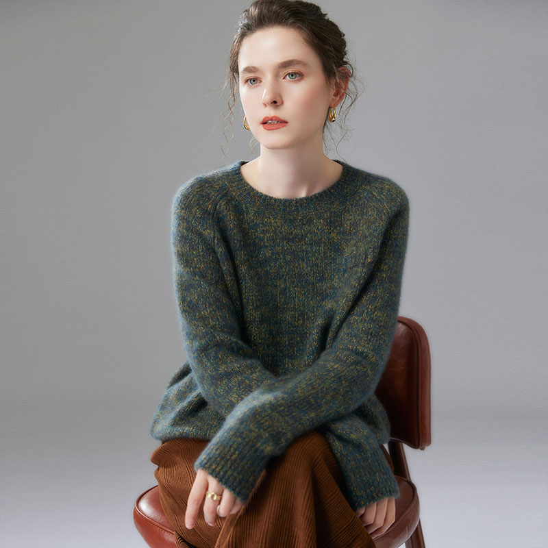 2025秋冬新款75%山羊绒25%桑蚕丝圆领加厚花纱宽松百搭针织打底衫