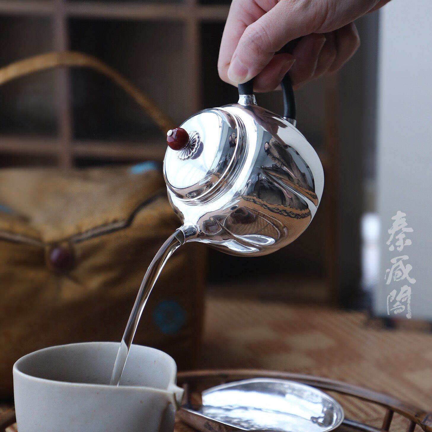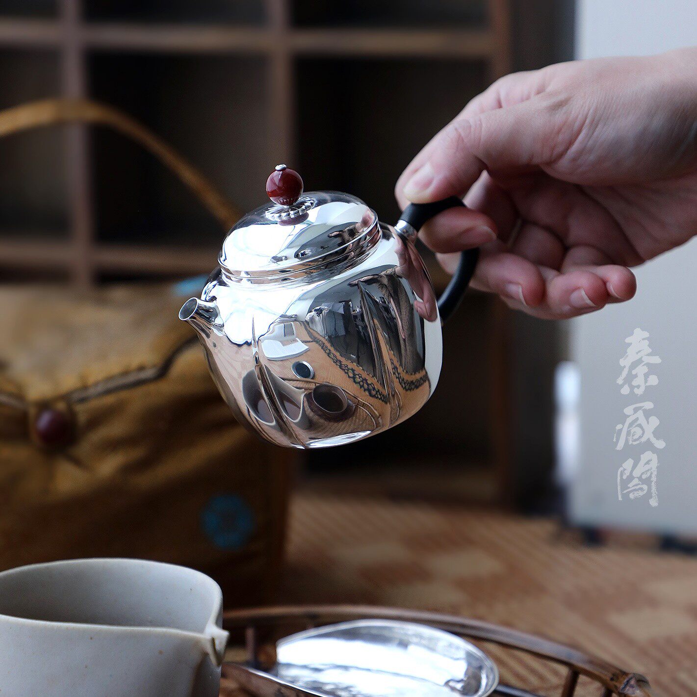 纯银时代紫皮秋月泡茶壶足银999纯手工复古做旧防烫送礼定制200ml