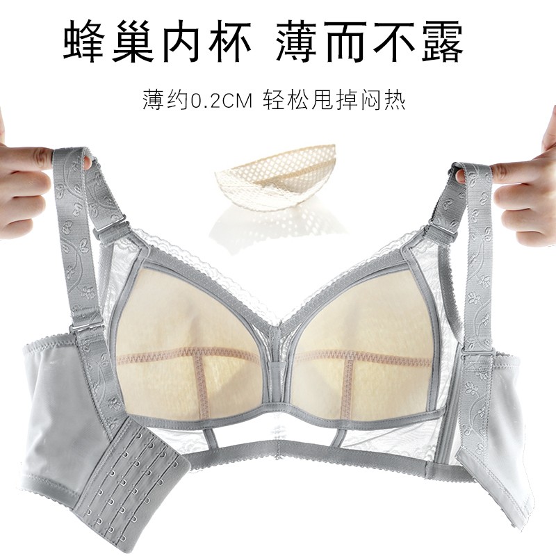 大胸显小内衣女薄款全罩杯无钢圈文胸胖mm大码防下垂收副乳胸罩