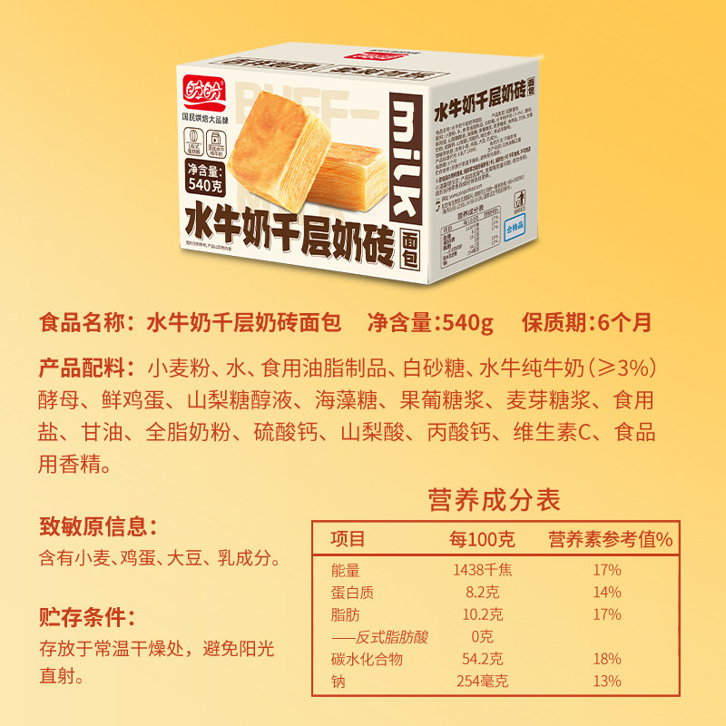 盼盼水牛乳千层吐司面包整箱早餐食品代餐蛋糕点心零食