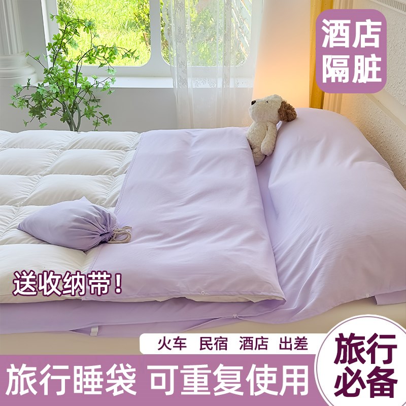 水洗棉纯色酒店隔脏睡袋单人双人床酒店防脏旅行露营床单被套被罩