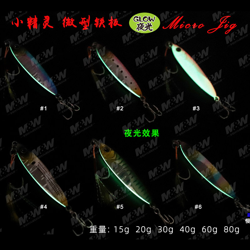 爱默达MW海钓小精灵微型铁板轻型夜光60克80克路亚假饵章红马鲛鱼