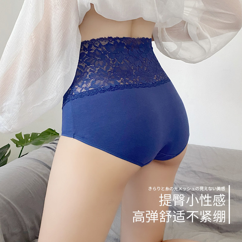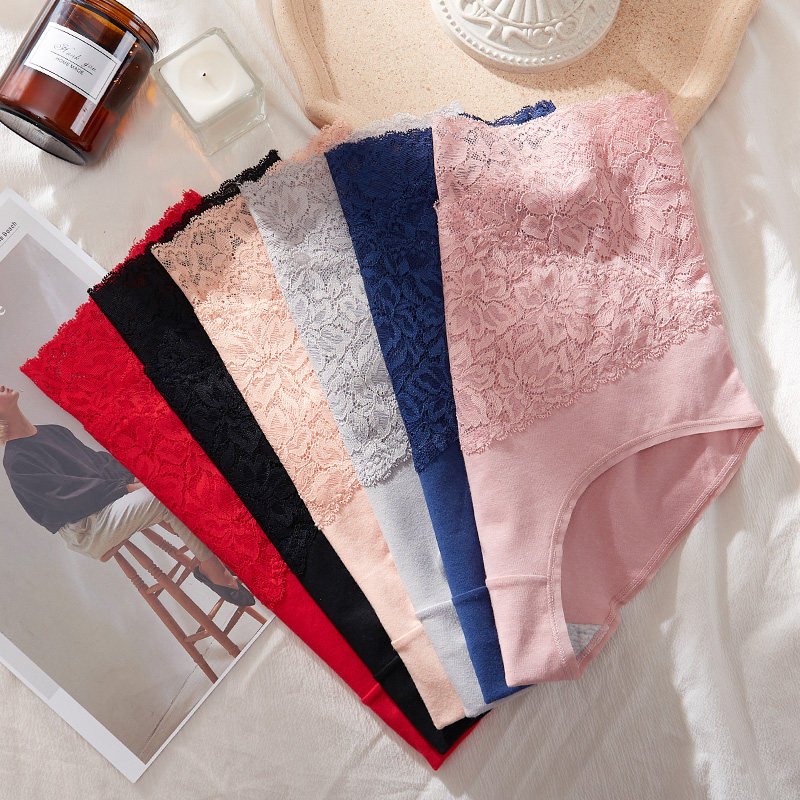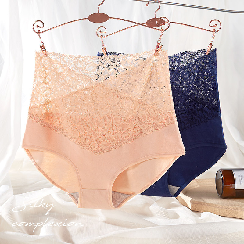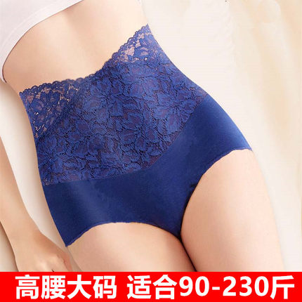 高腰性感蕾丝透明收腹大码胖mm200斤产后三角内裤女士纯棉抗菌档