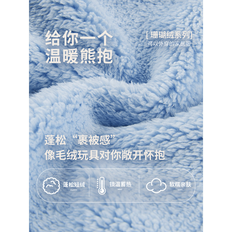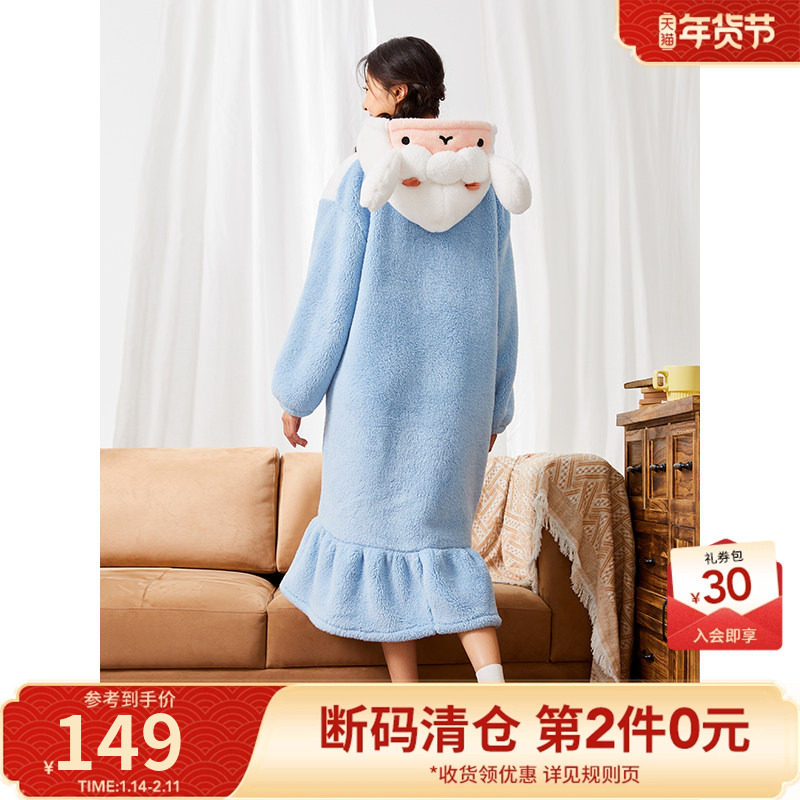 热风2023年秋冬季新款女士趣味毛绒睡裙家居服睡衣可爱风女装上衣