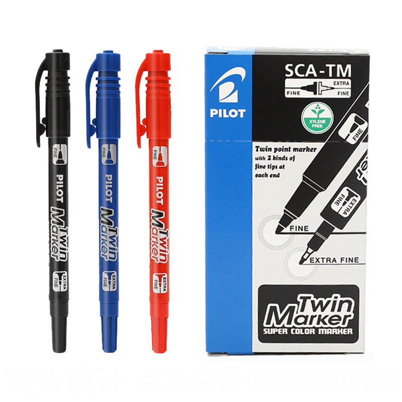 日本PILOT百乐记号笔黑色油性不掉色小双头粗细勾线勾边大头笔速干马克笔防水不褪色不可擦记好计号签名签到