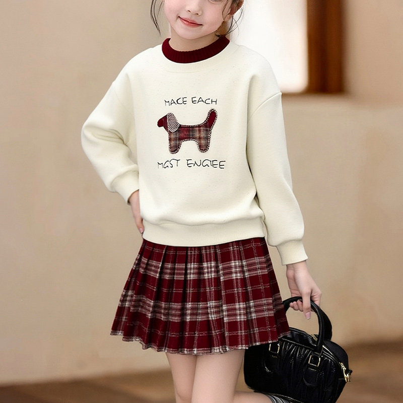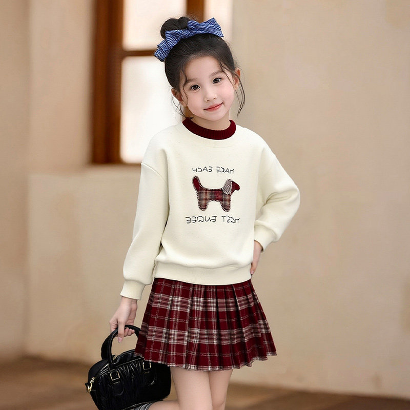 女童韩版套装2025秋冬季新款洋气百搭时尚卫衣格子半身裙两件套潮