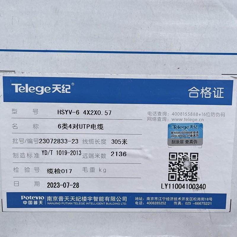 正品南京普天天纪超五类六类非屏蔽网线HSYV-6类普天无氧铜双绞线