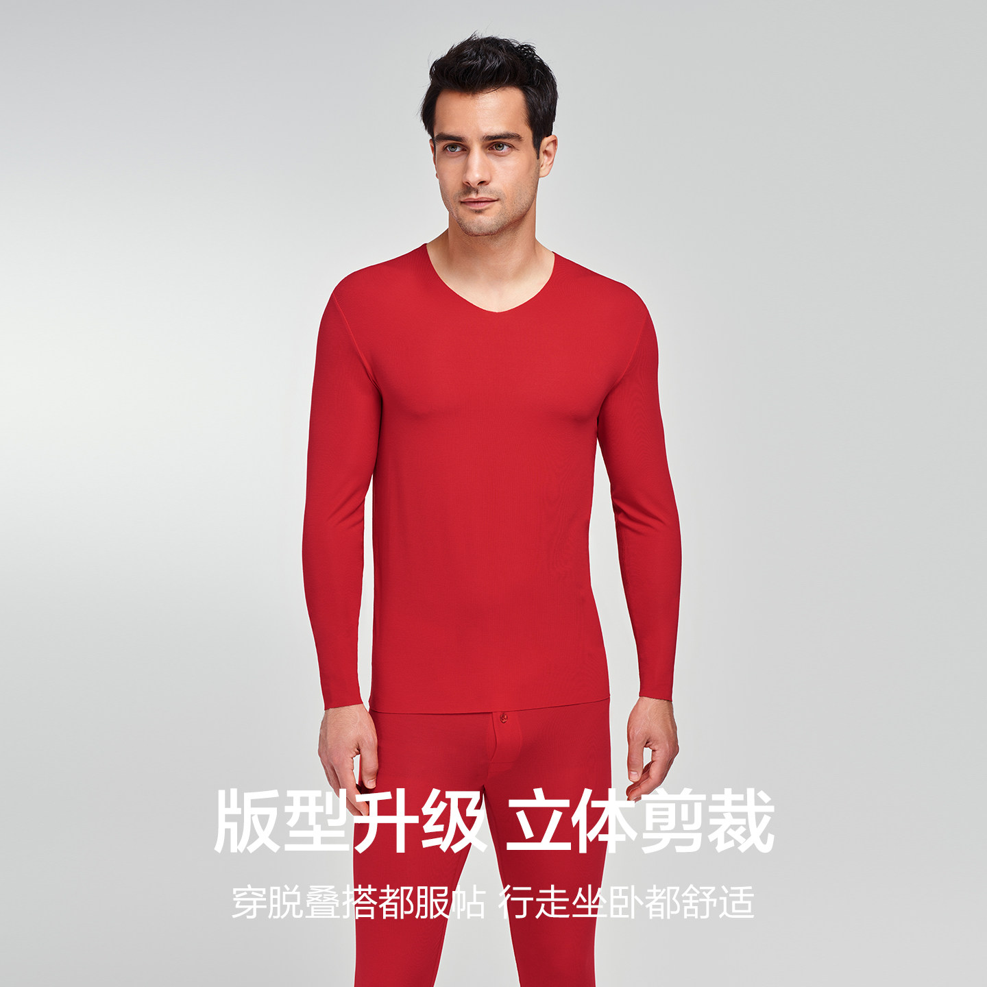 爱慕先生本命年保暖内衣男士红品莫代尔薄款净痕抗菌秋衣秋裤套装