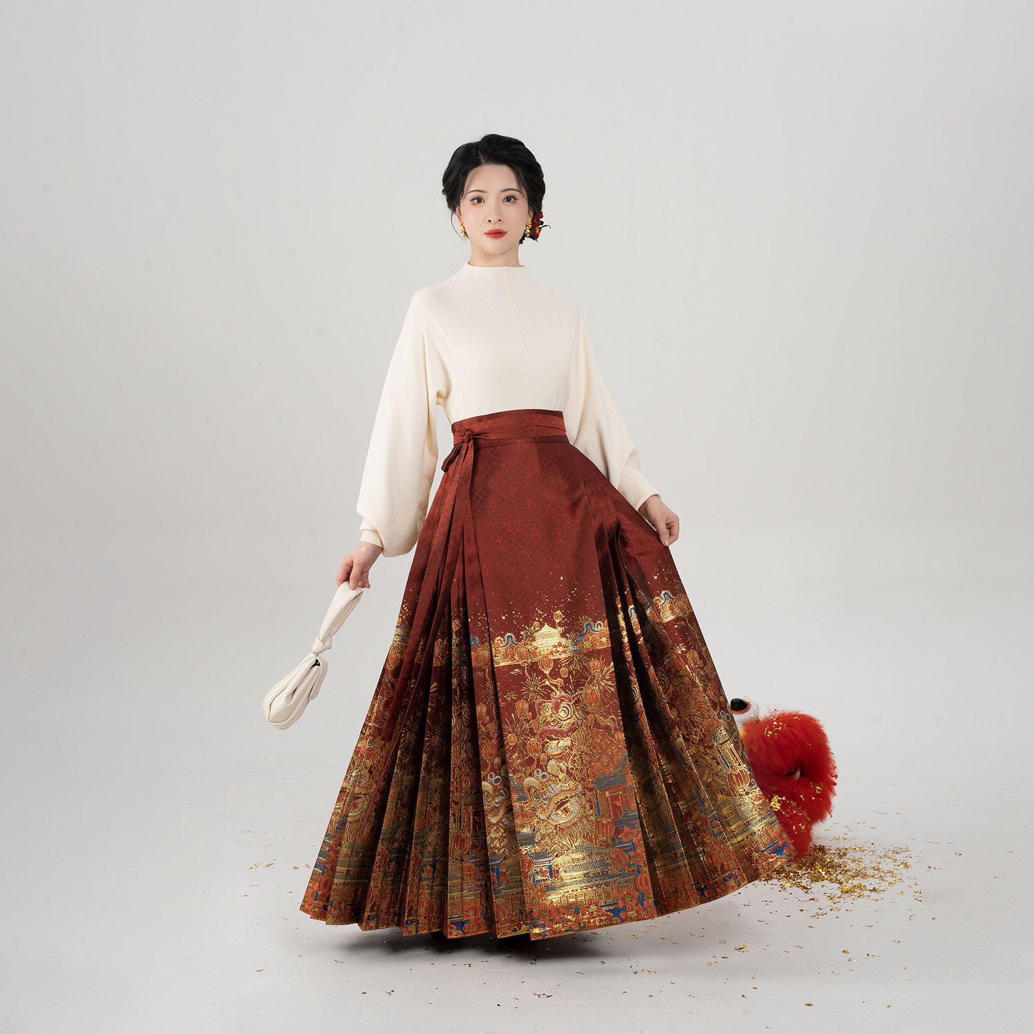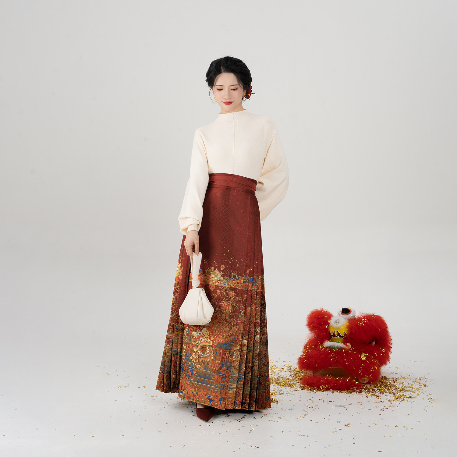 织造司[燃棉醒狮]红色过年战袍明制妆花织金马面裙汉服斗篷外套女