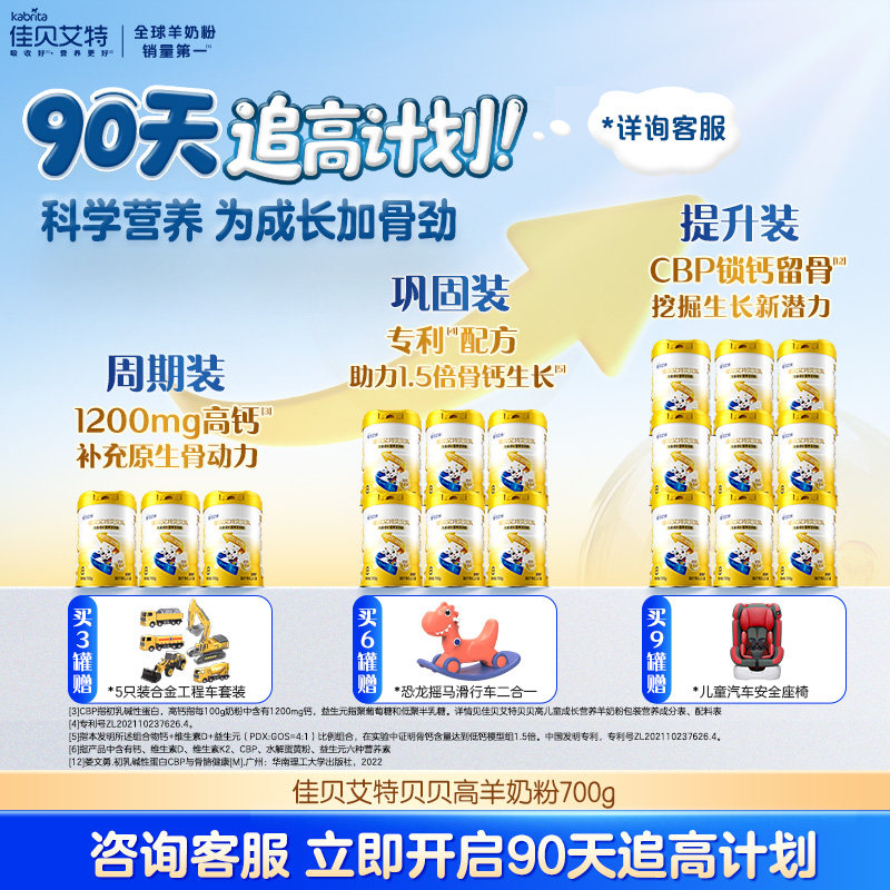 * 佳贝艾特正品贝贝高儿童成长营养高钙羊奶粉 3岁以上700g CBP