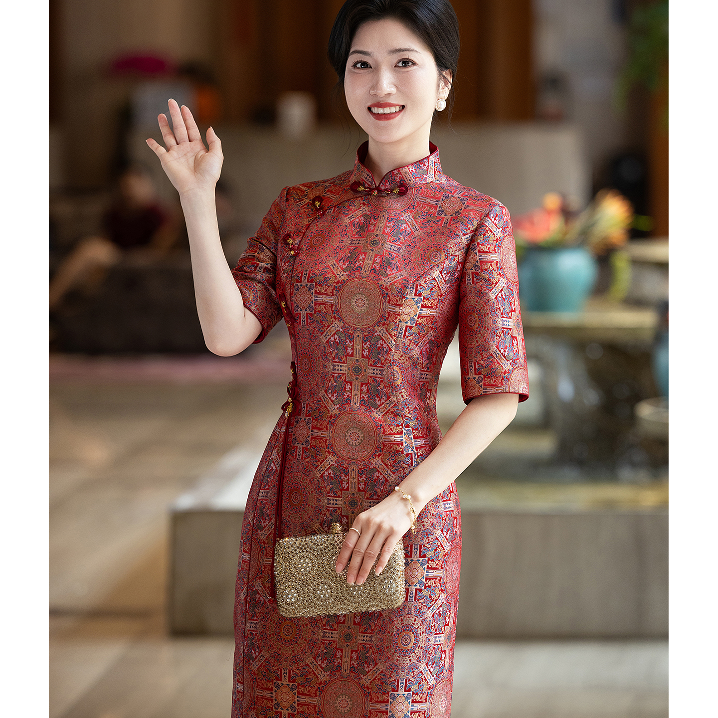 2025新款秋妈妈装婚宴盘扣旗袍喜妈妈婚礼修身礼服小个子平时可穿