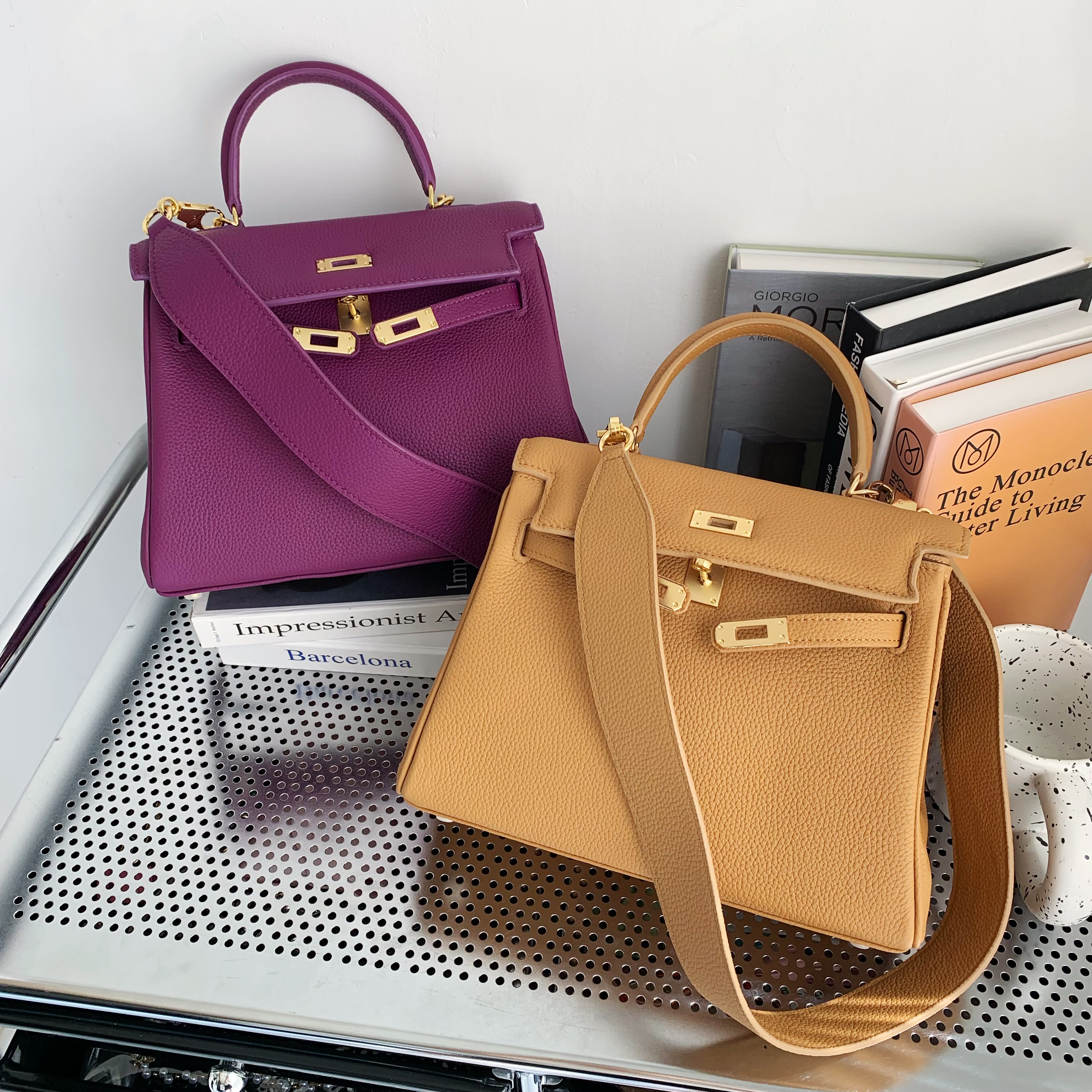 2024秋高级感真皮凯莉包包包女
