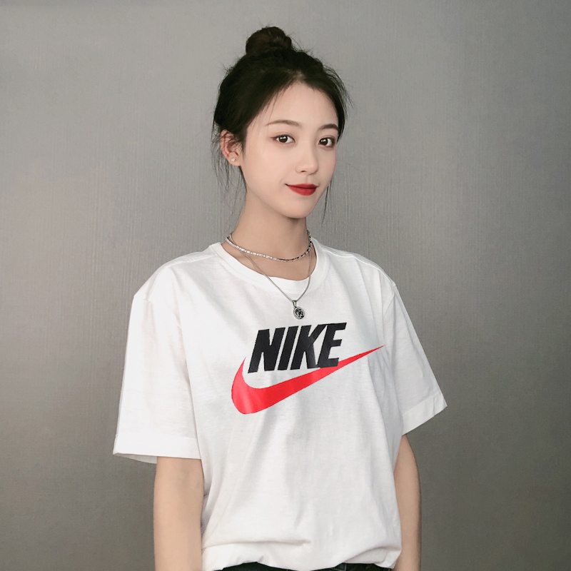 耐克男女款T恤2025春季新款红勾大logo运动透气纯棉半袖白色短袖