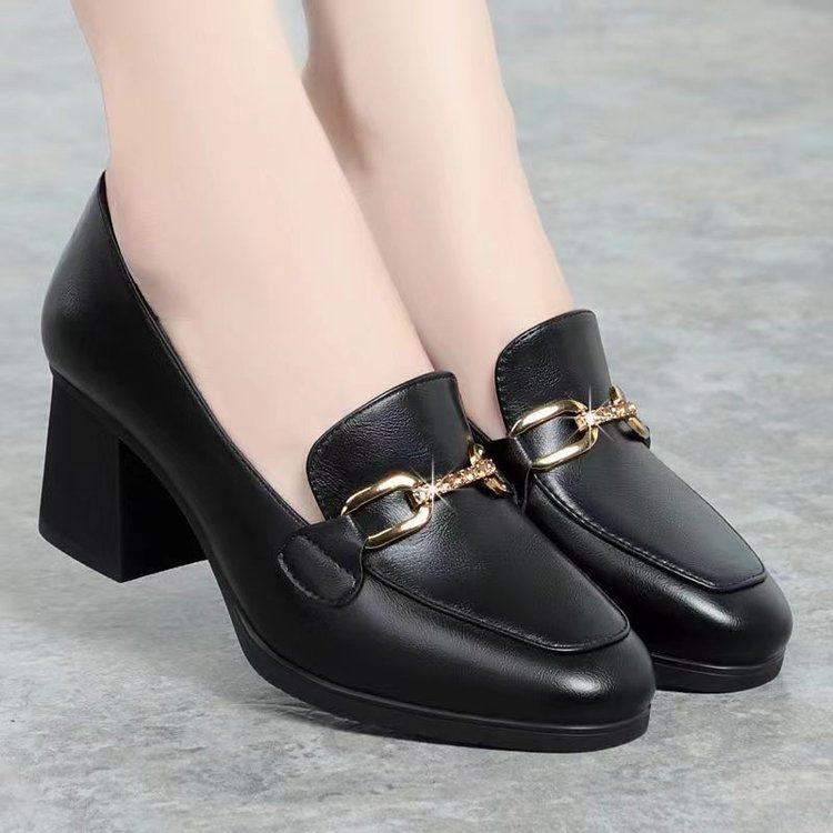 大东妞品牌清仓中年2023春季新款百搭中跟小香风真皮软底皮鞋女圆