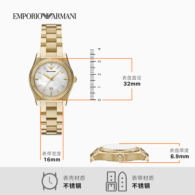 阿玛尼女士小金表贝母盘石英腕表