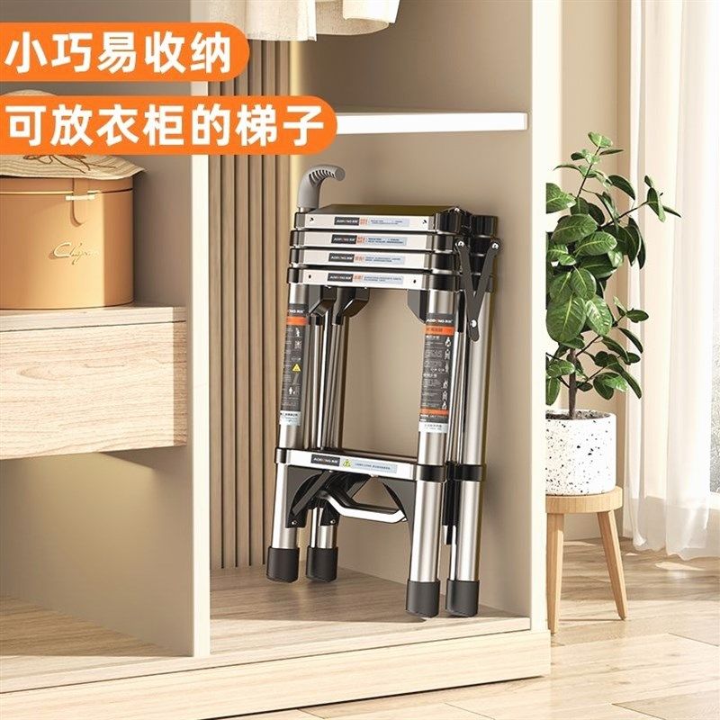 德国进口加厚不锈钢折叠小梯子室内便携升奥鹏多功能家用伸缩梯子