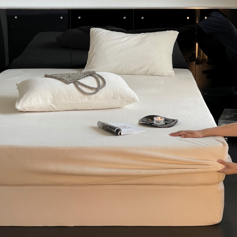 简约纯色牛奶绒床笠单件冬天加厚珊瑚绒床罩防滑保护套1.8床