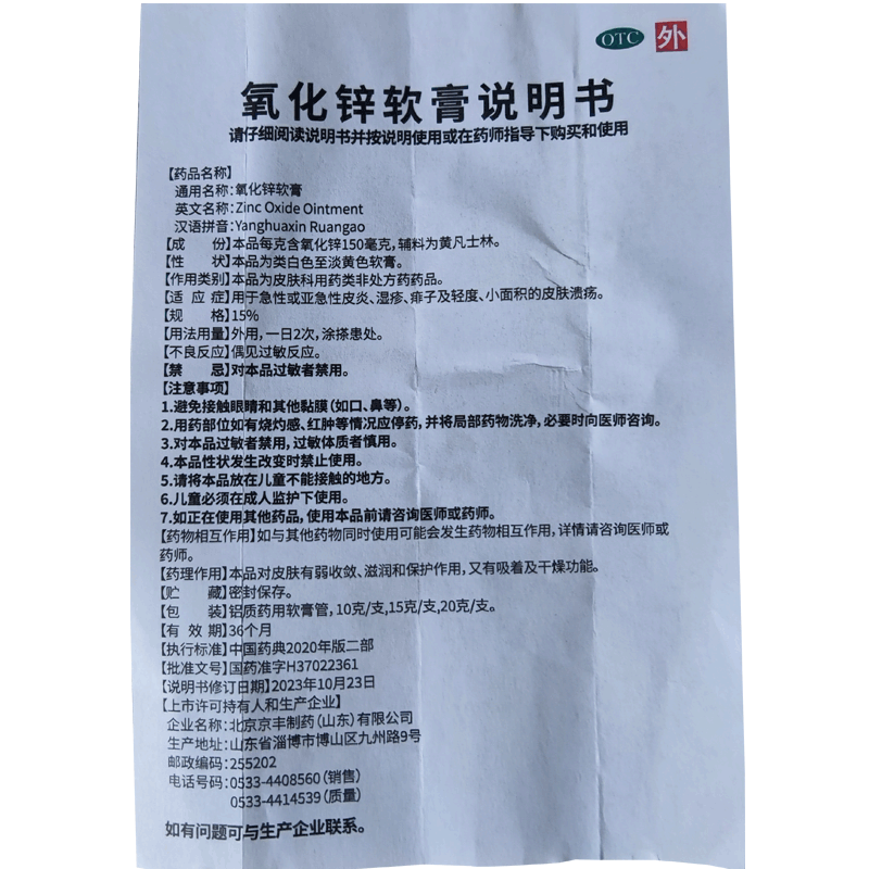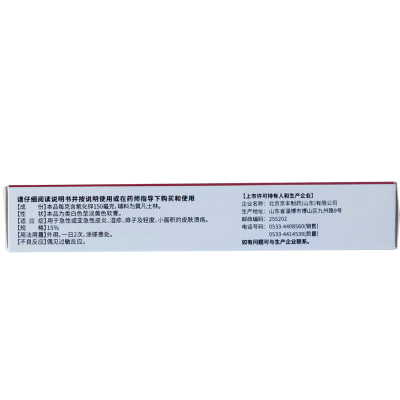 京丰 氧化锌软膏 15%*20g*1支/盒亚急性皮炎、湿疹、痱子及轻度