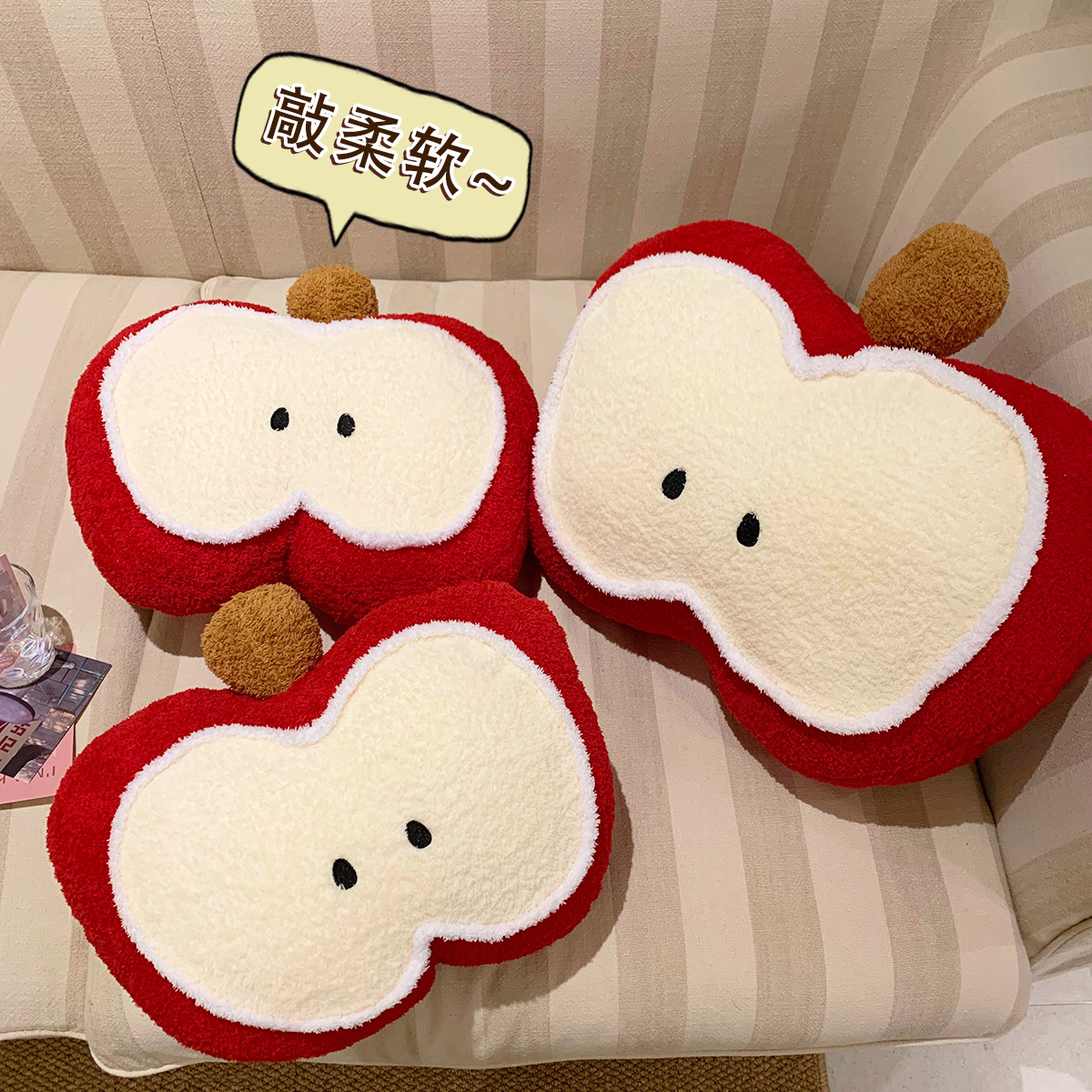 ins新款红苹果毛绒抱枕萌趣可爱靠垫不掉毛柔软飘窗车床头靠枕垫