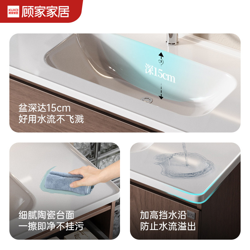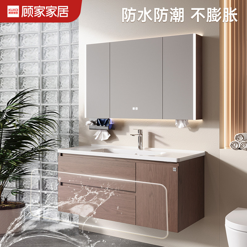 顾家家居中古风浴室柜组合陶瓷一体盆洗脸盆柜卫生间卫浴柜洗漱台