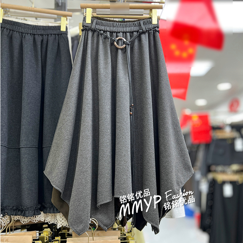 好看复古加厚不规则斜边毛呢半身裙女秋冬2025新款a字伞裙长裙子