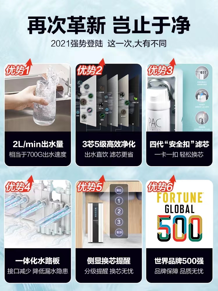 长虹反渗透净水器家用RO膜纯水机直饮净水除垢过滤器厨房自来水
