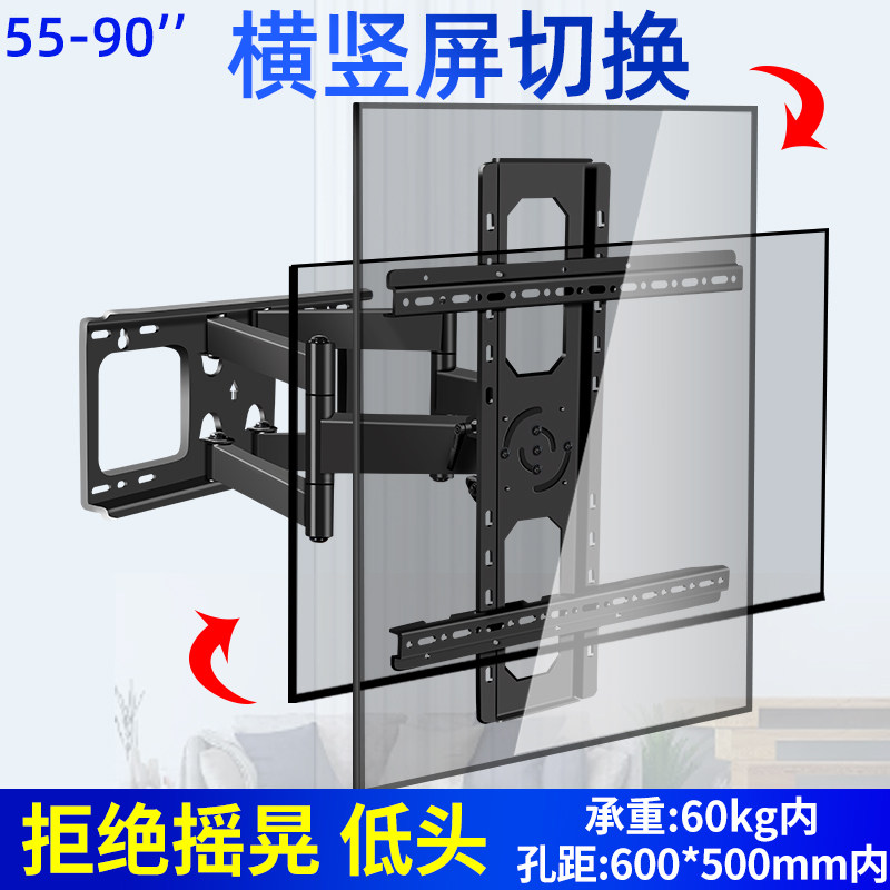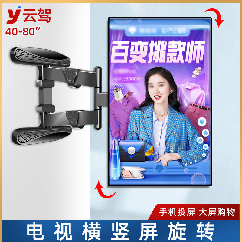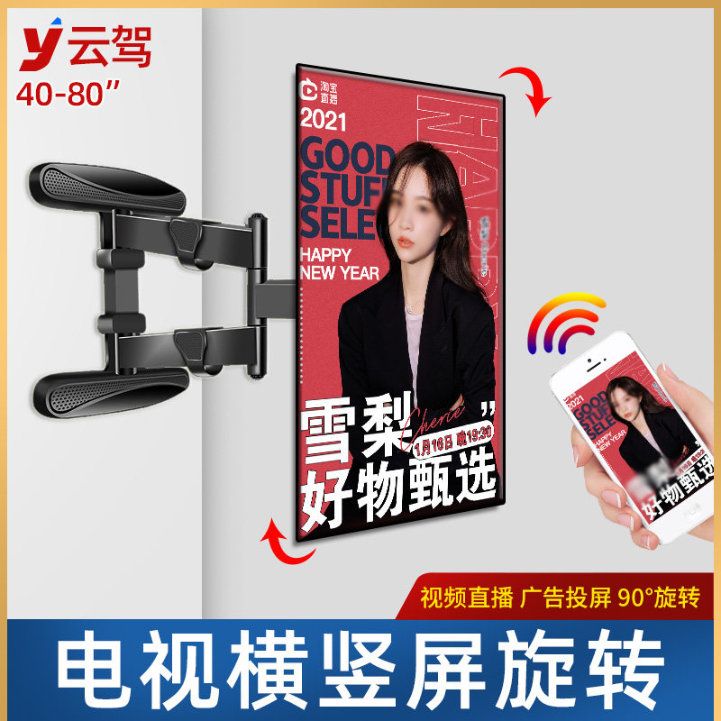 360度竖屏电视挂墙支架伸缩旋转可移动壁挂架横竖屏手机投屏抖音