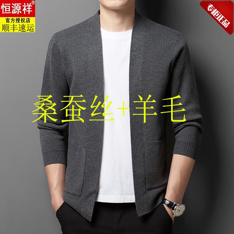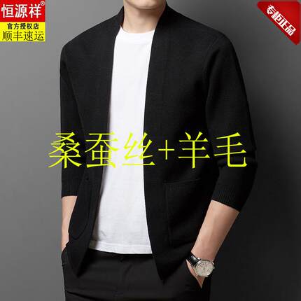 恒源祥高端男士针织V领开衫外套