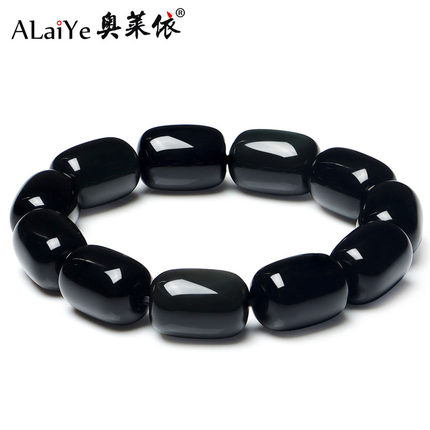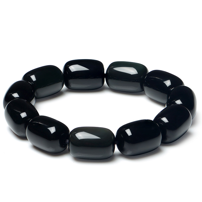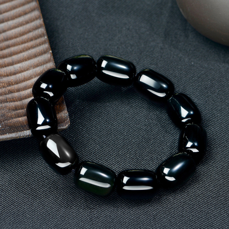 天然黑曜石手链女桶珠宝石情侣男
