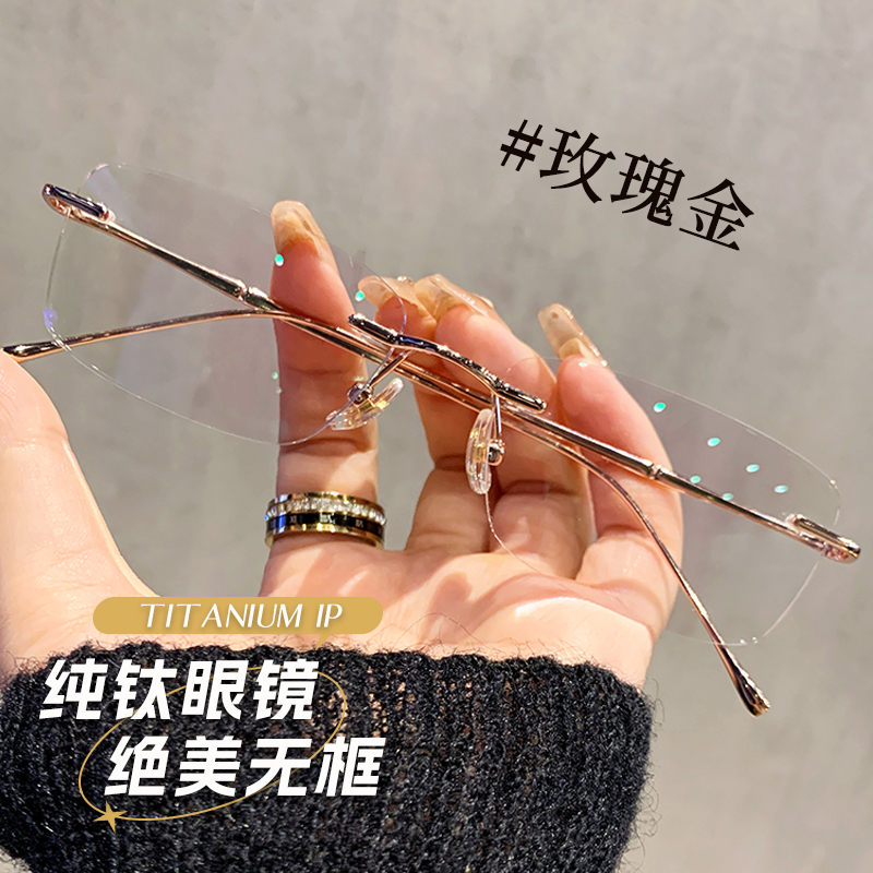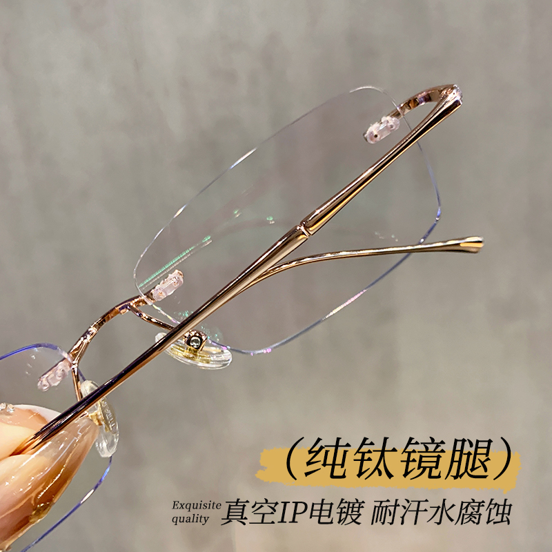 超轻纯钛无边框眼镜架女款近视可配度数防蓝光高级感纯欲方圆脸男