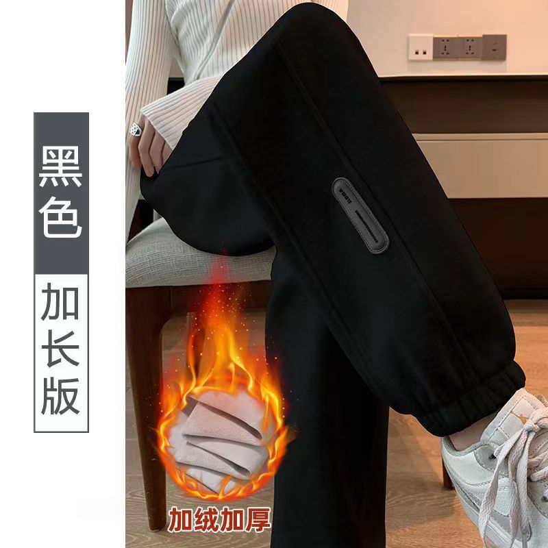 运动裤女冬季加绒超长宽松束脚哈伦裤子加长版高个子175休闲卫裤