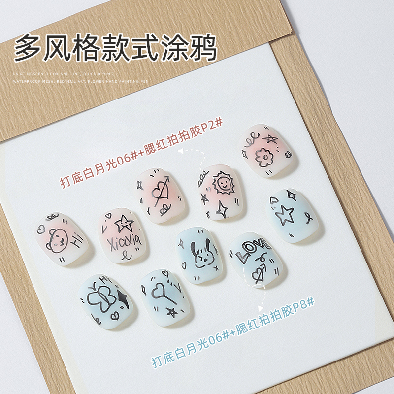 网红爆款美甲涂鸦笔丙烯速干拉线棋盘格2025彩绘笔美甲店专用工具