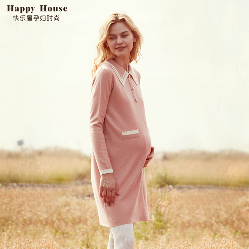 快乐屋孕妇宽松针织连衣裙2025新款冬装小香风时尚孕妇裙洋气长裙
