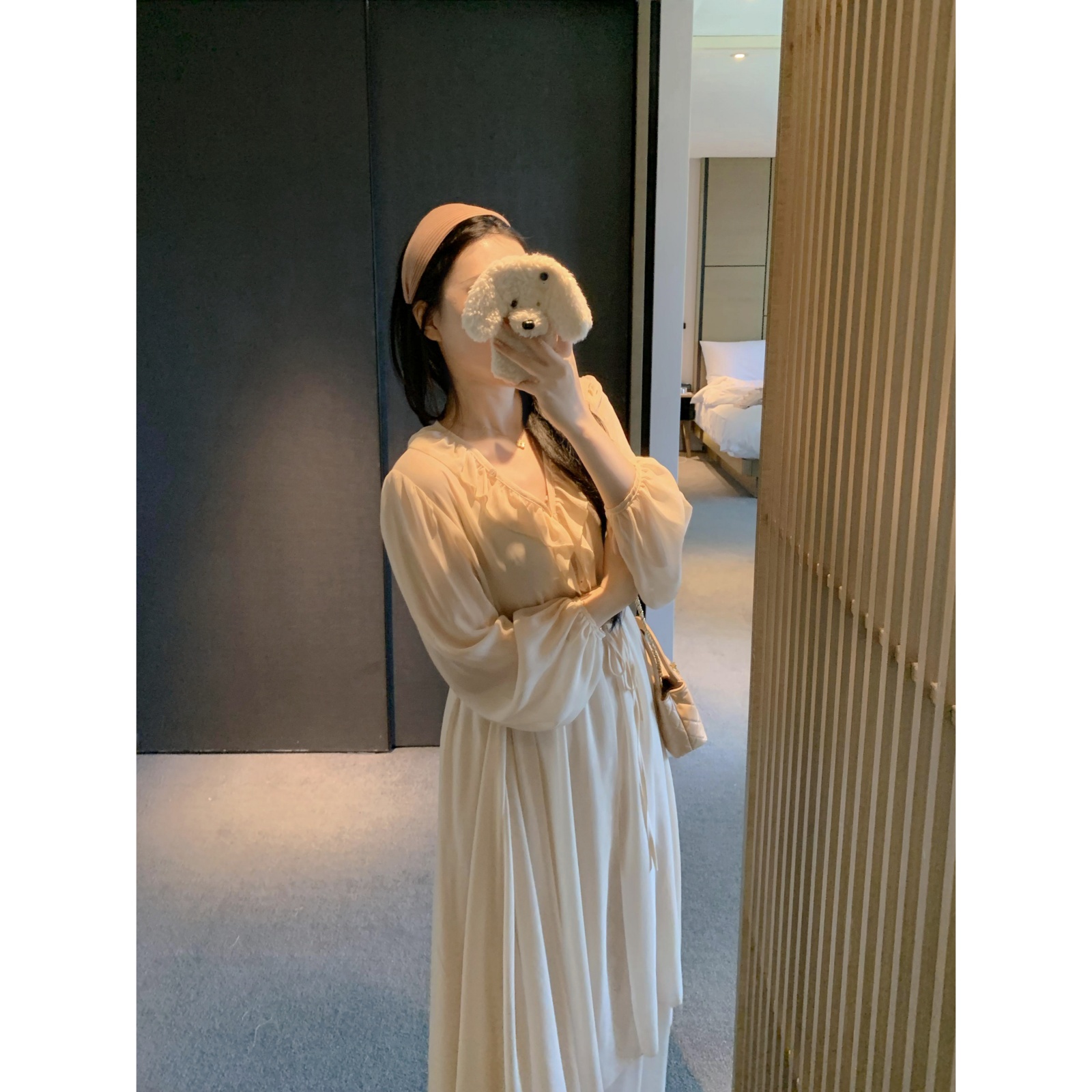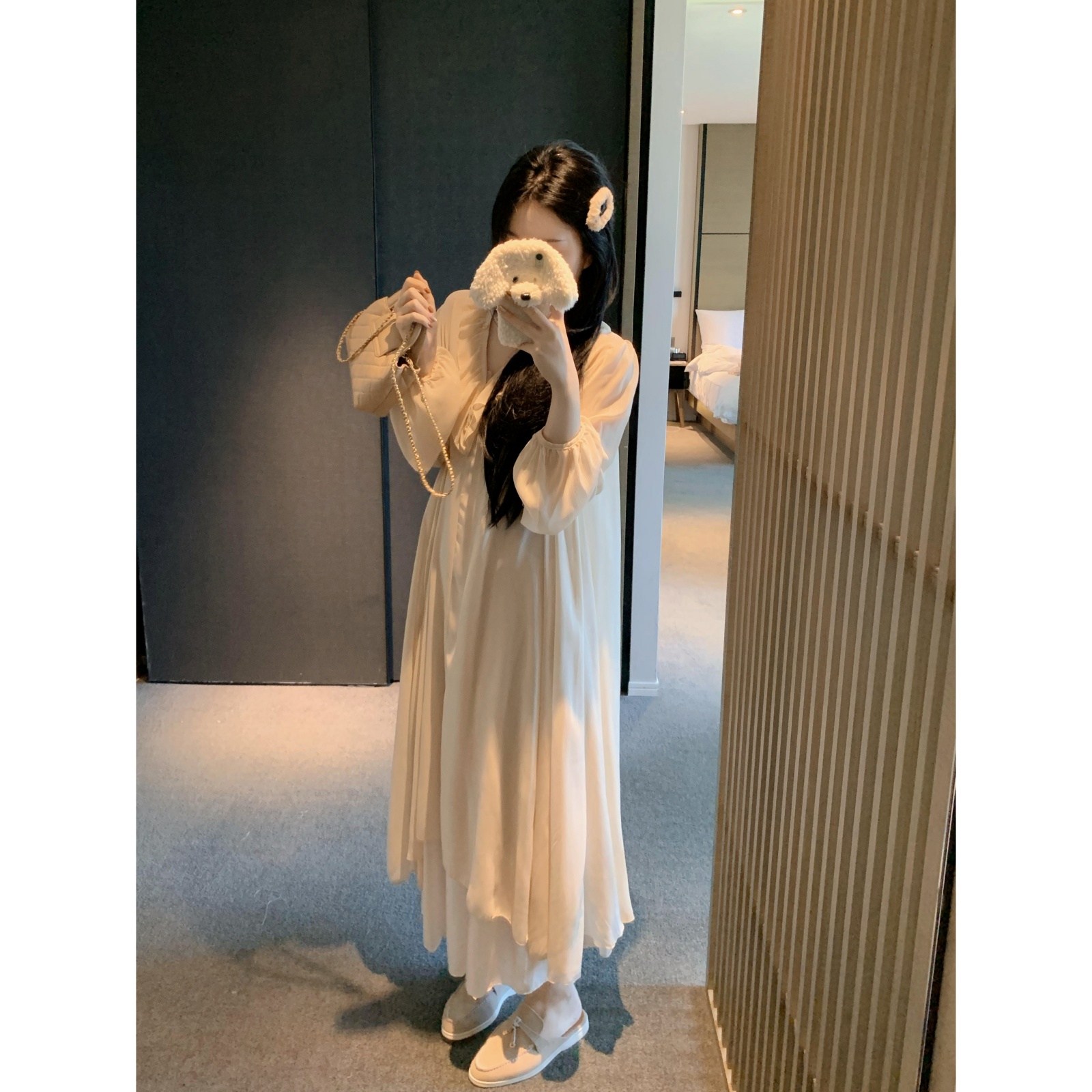 城南边儿10.20浪漫花瓣领连衣裙长袖长裙超仙大摆法式裙子