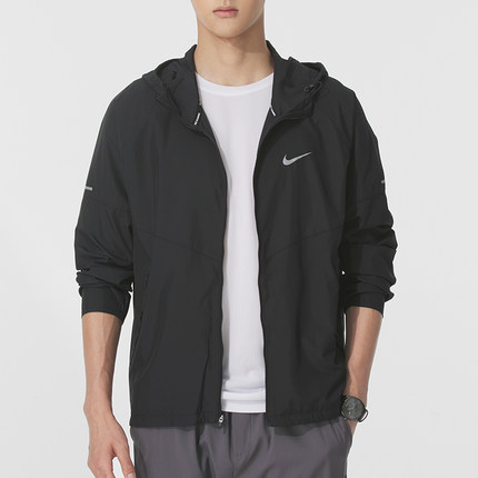 耐克官方外套男装秋季薄款梭织跑步训练上衣黑色连帽夹克潮DD4747