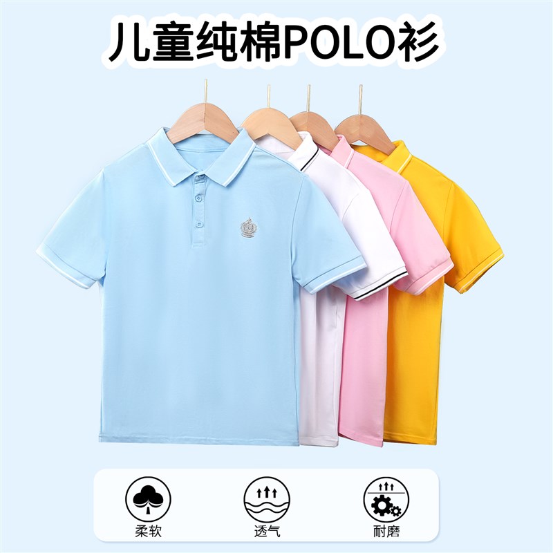 儿童Polo衫T恤纯棉短袖中大童翻领夏薄款男女童洋气学生校服打底