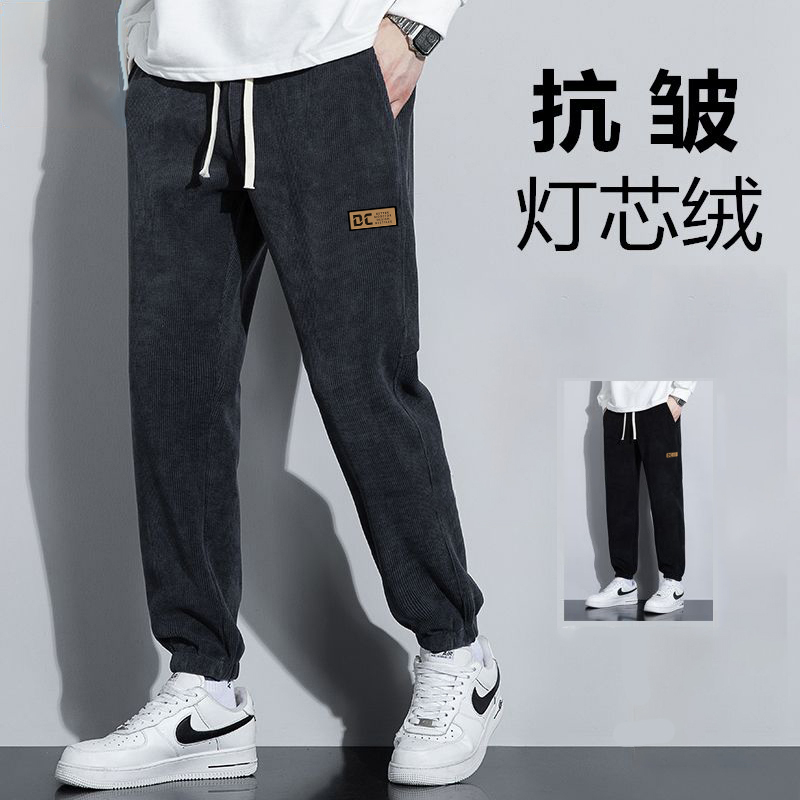2025新款重磅灯芯绒卫裤秋季男士宽松休闲拼接加厚运动束脚长裤子