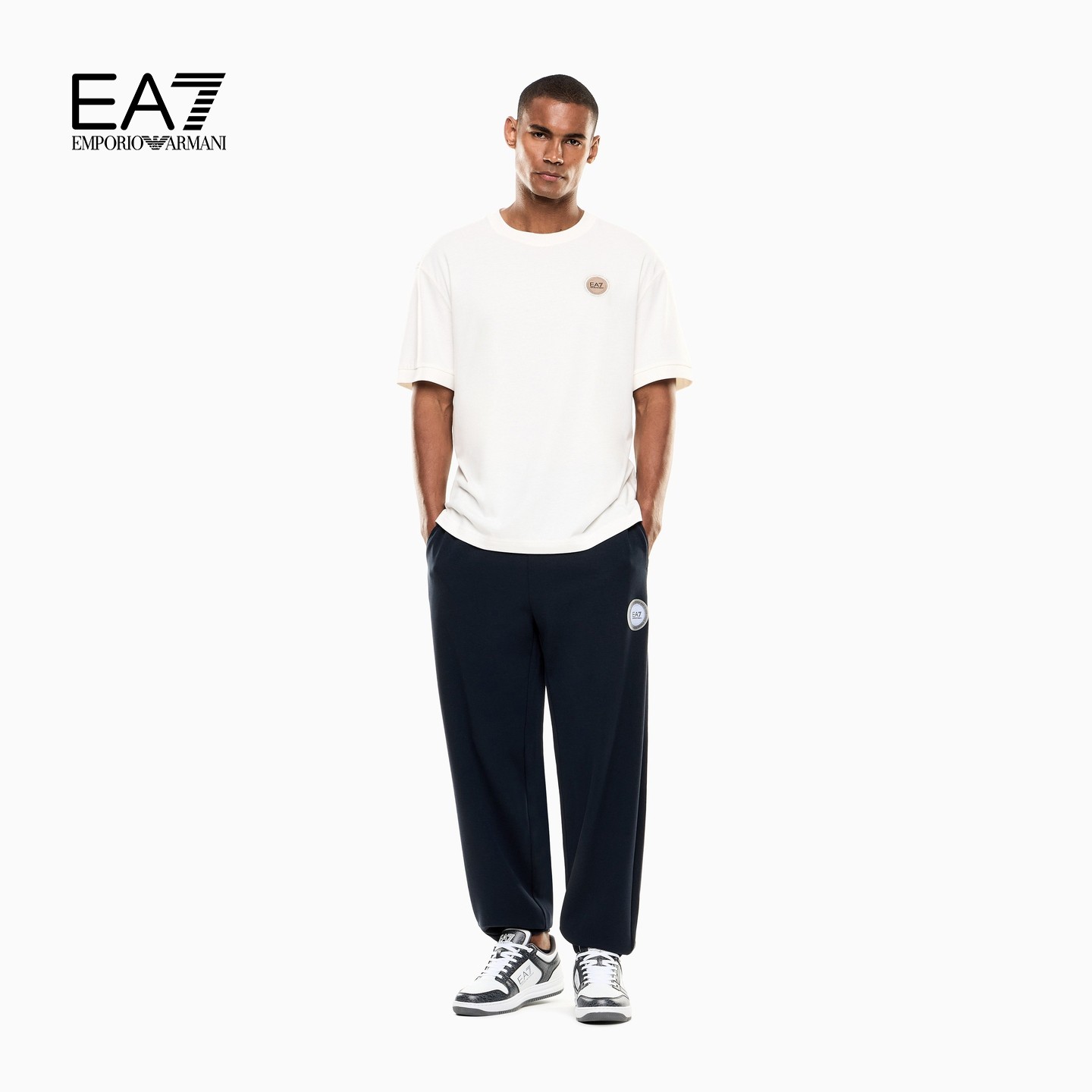 EMPORIO ARMANI/阿玛尼EA7/春新款男女情侣宽松束脚运动重磅卫裤