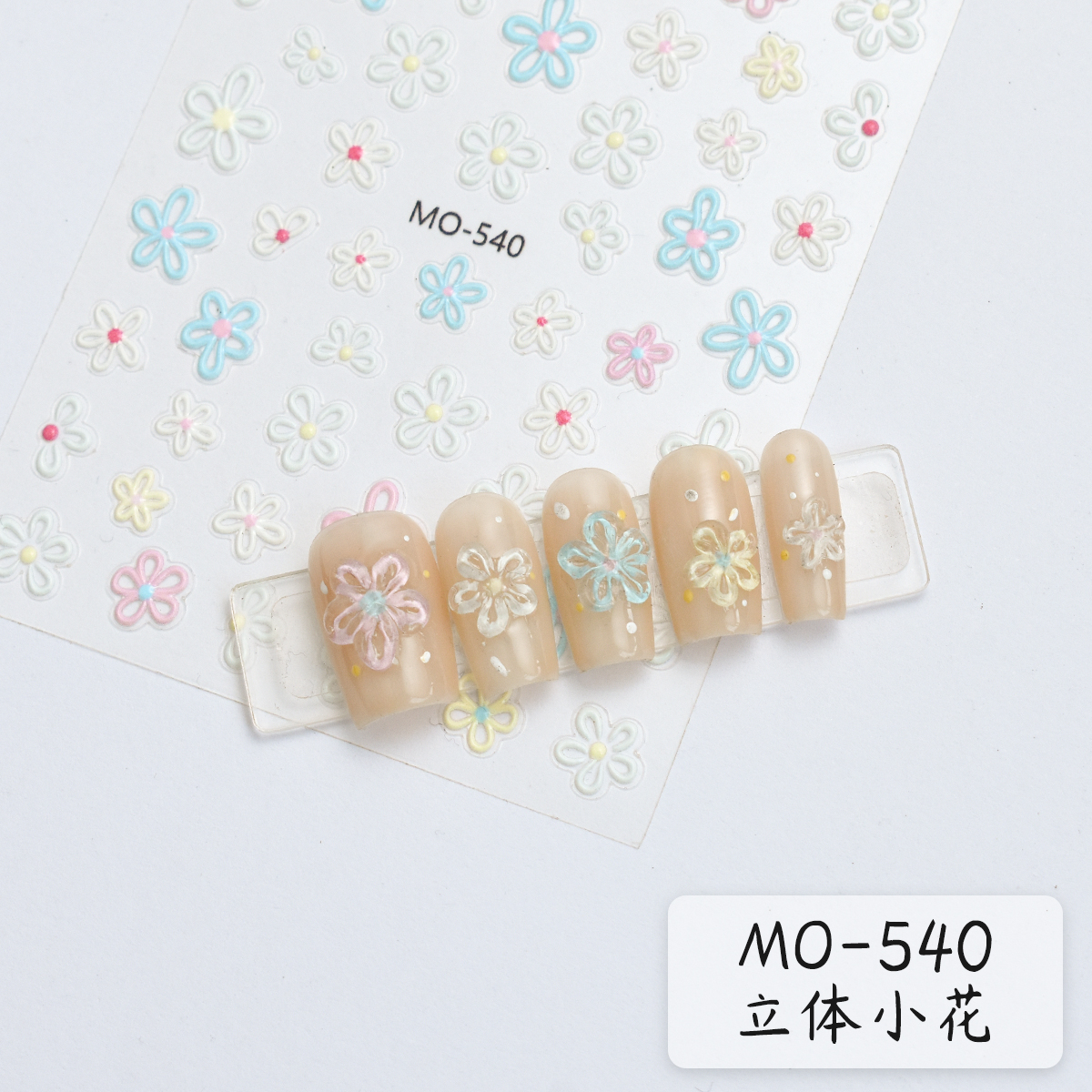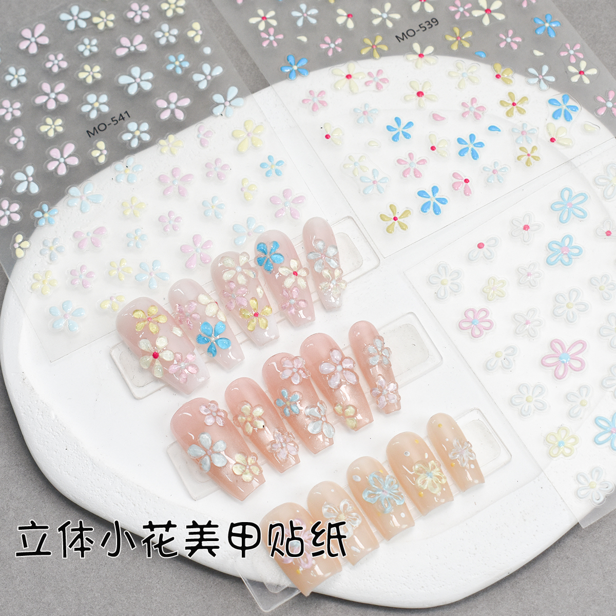 网红新款立体浮雕小花美甲贴纸秋冬多巴胺果冻彩色花瓣指甲装饰品