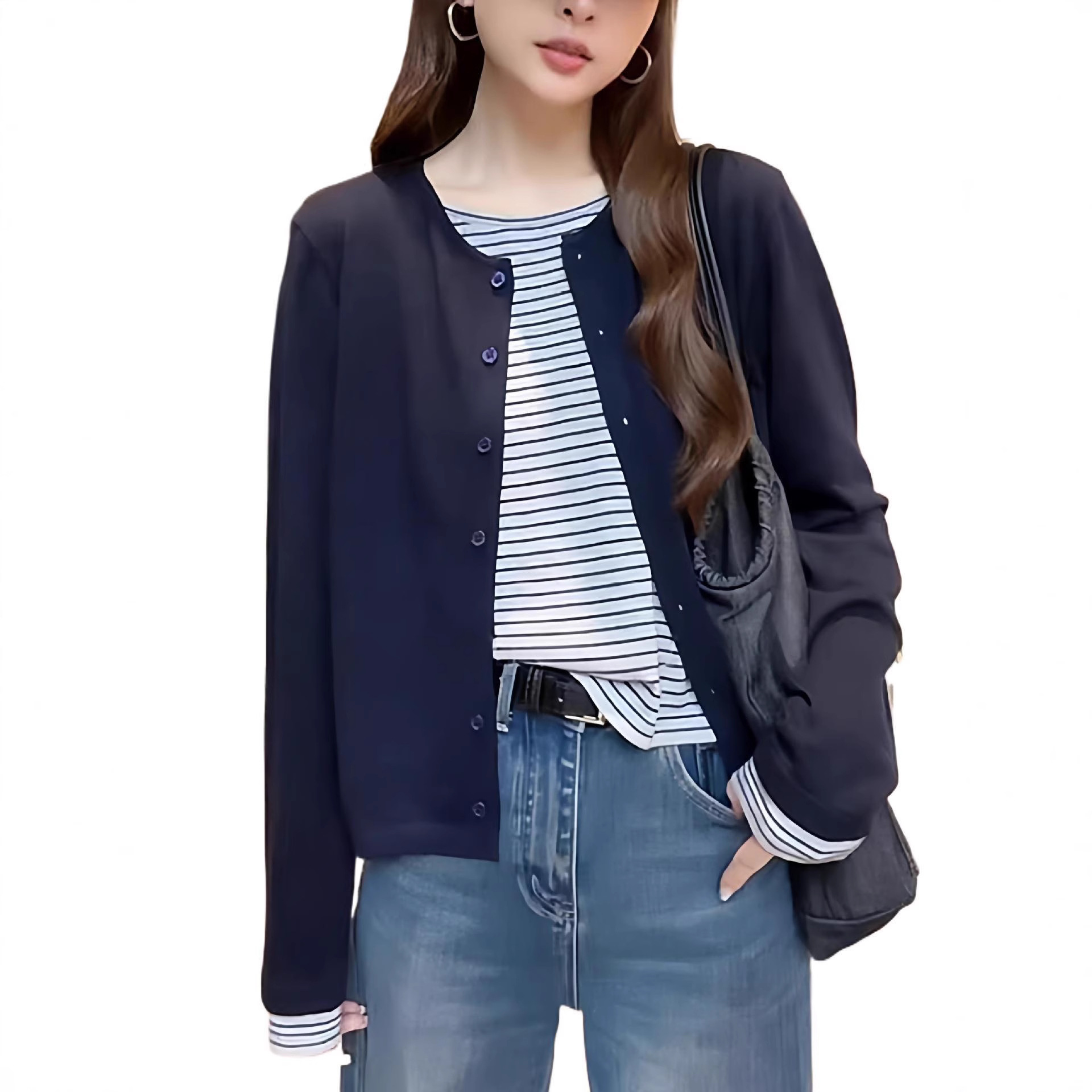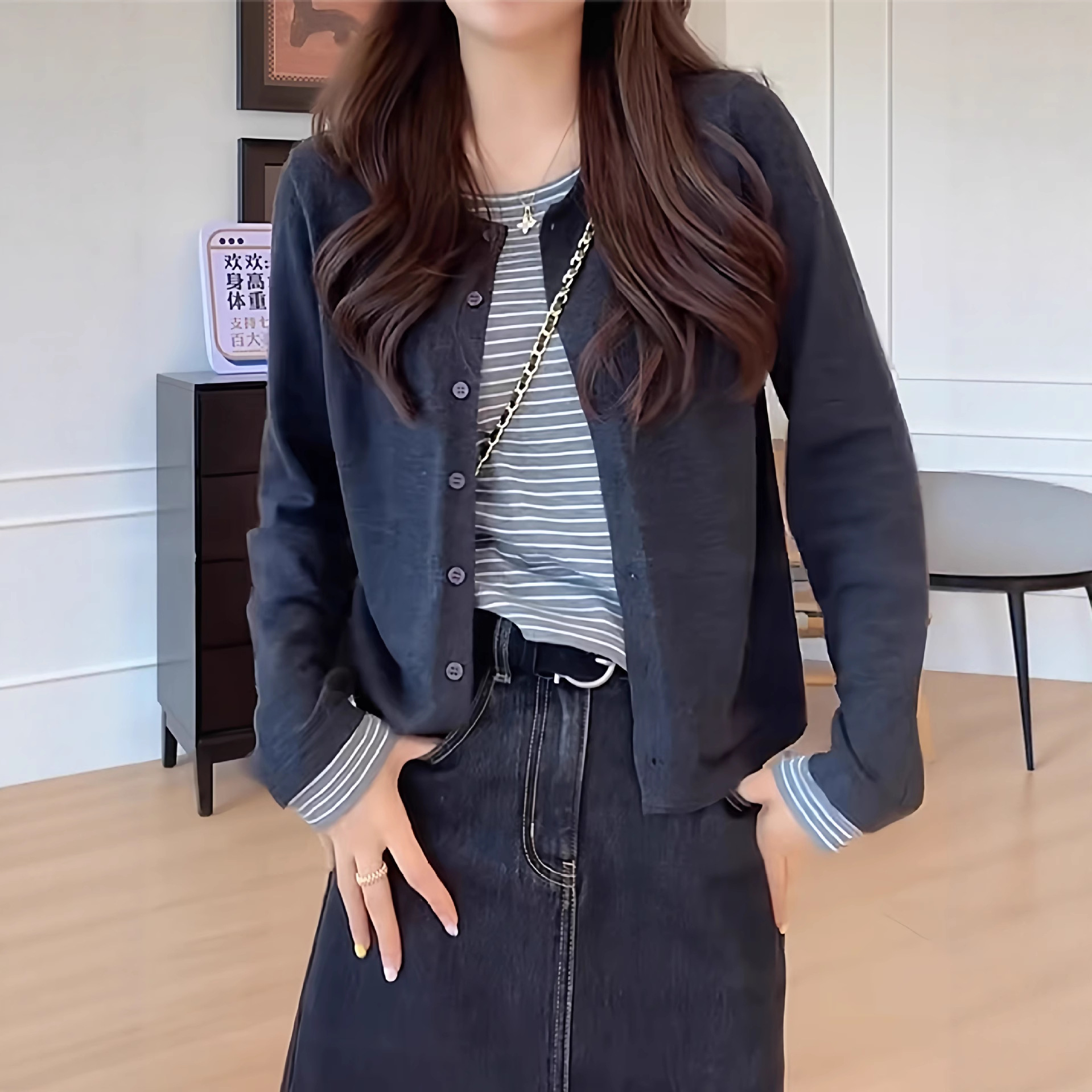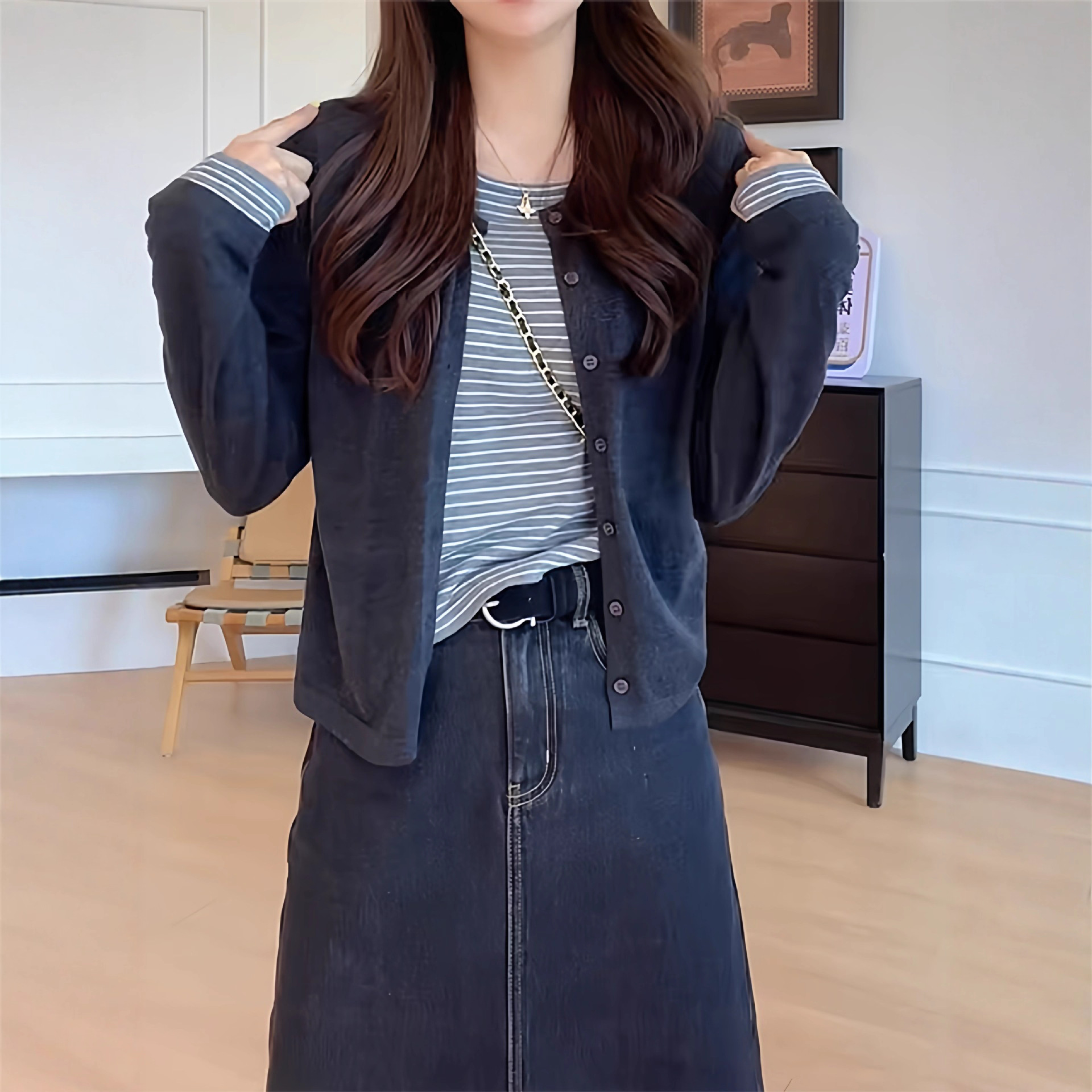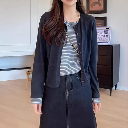 假两件条纹针织开衫长袖秋冬2025新款大码胖mm设计感减龄打底