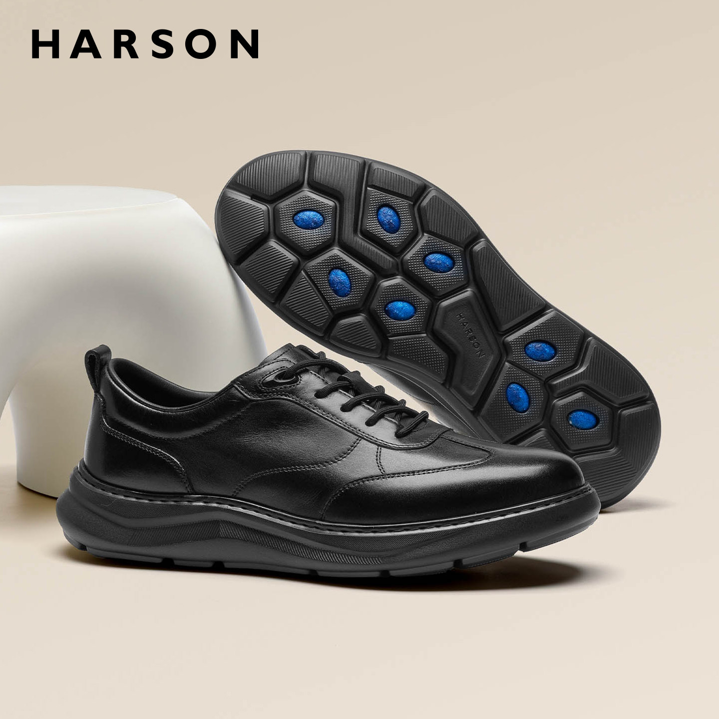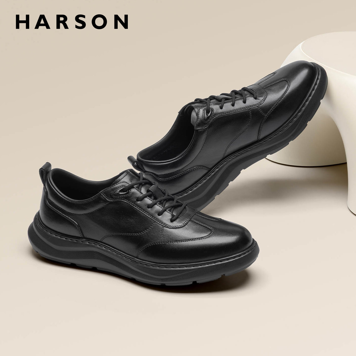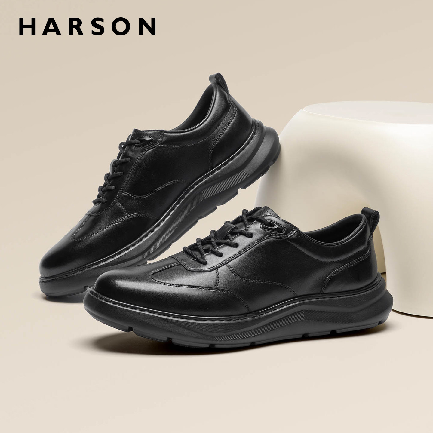 哈森男鞋春季皮鞋男真皮商务休闲鞋皮质跑步鞋软底黑色公务通勤鞋