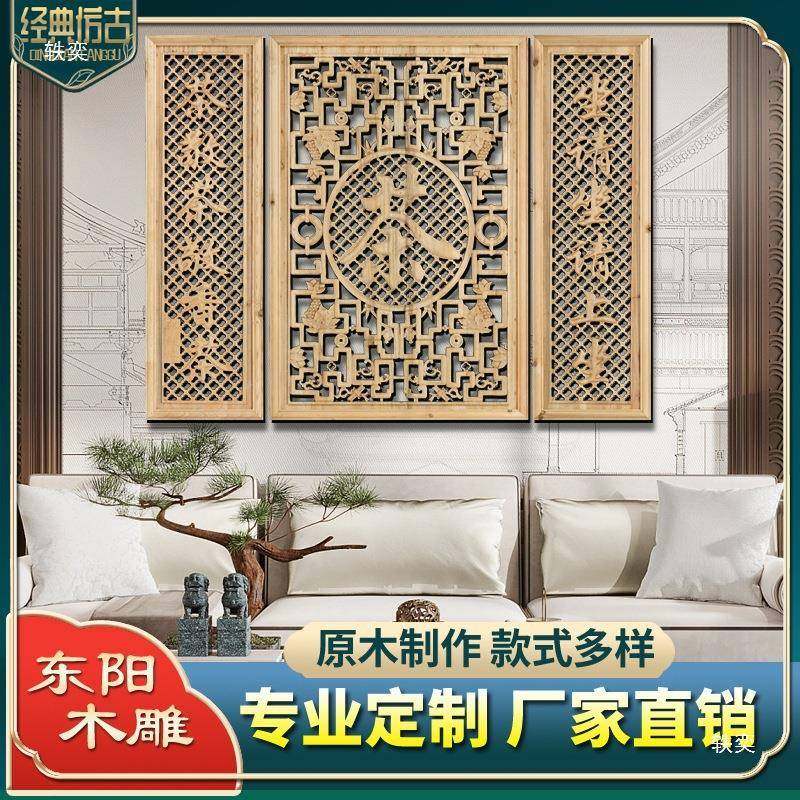 东阳木雕新式风隔断墙客厅镂空花格玄关栅栏门仿古窗屋屏檐斗9839