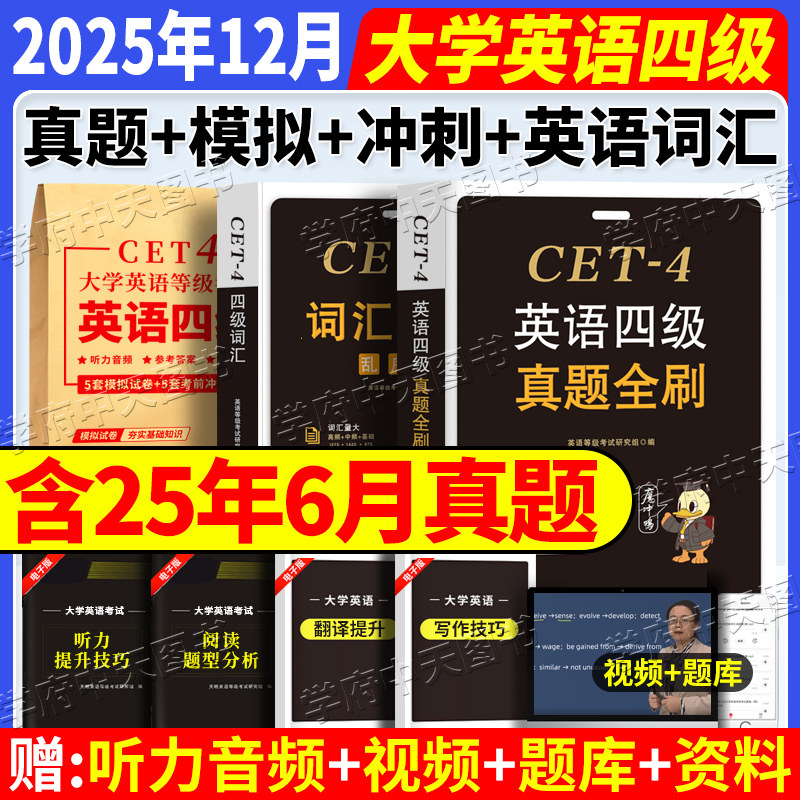 四级真题备考2025年12月大学英语4级四六级考试真题试卷便携词汇乱序版书单词复习资料6级六级星火cet四级考试教材历年真题卷子