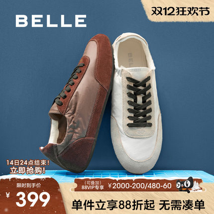 百丽男士复古撞色德训鞋男2025秋季新款薄底休闲运动板鞋8TH01CM5