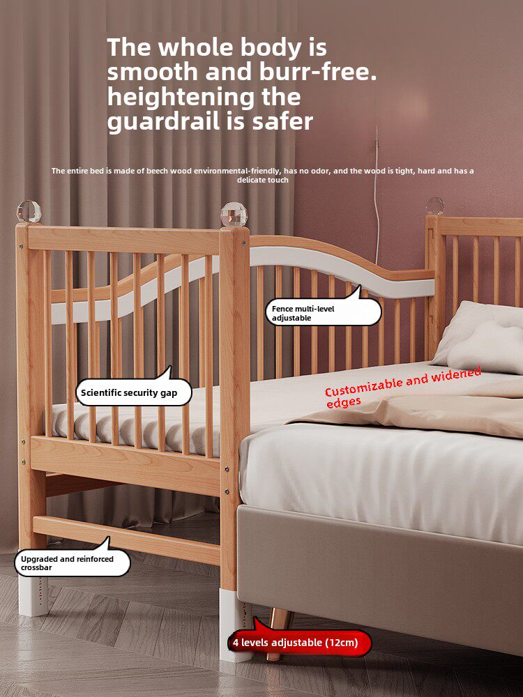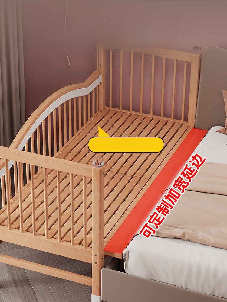 山毛榉儿童床拼接大床护栏实木加宽男孩婴儿床婴儿床和单人床女孩