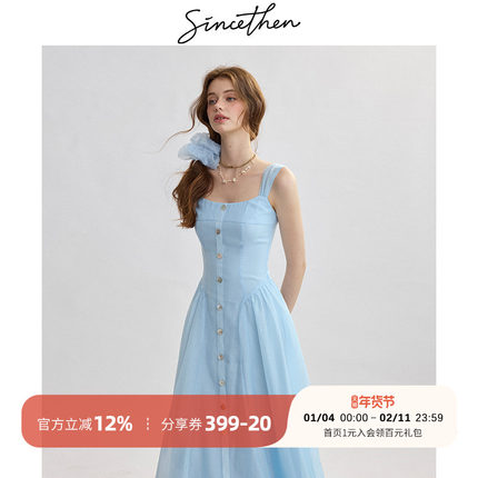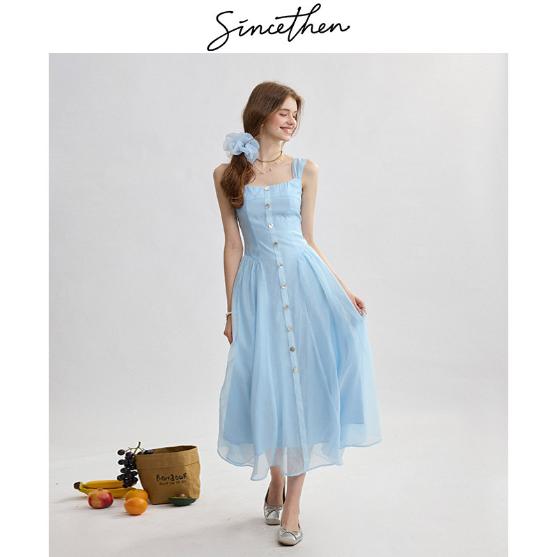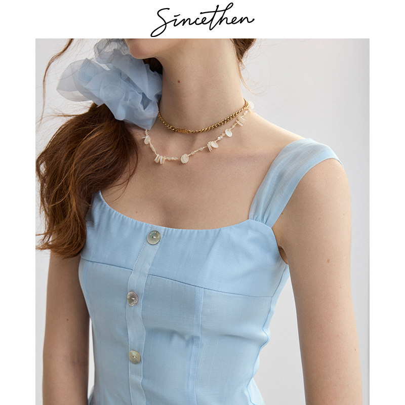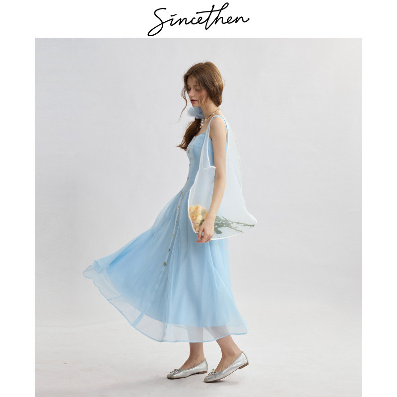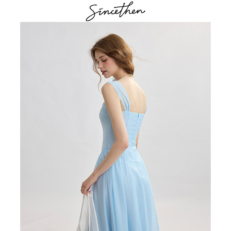 sincethen法式吊带裙蓝色连衣裙甜美风无袖长裙高级感小裙子女夏