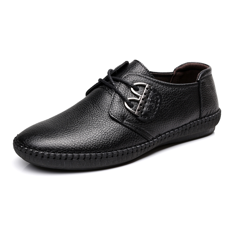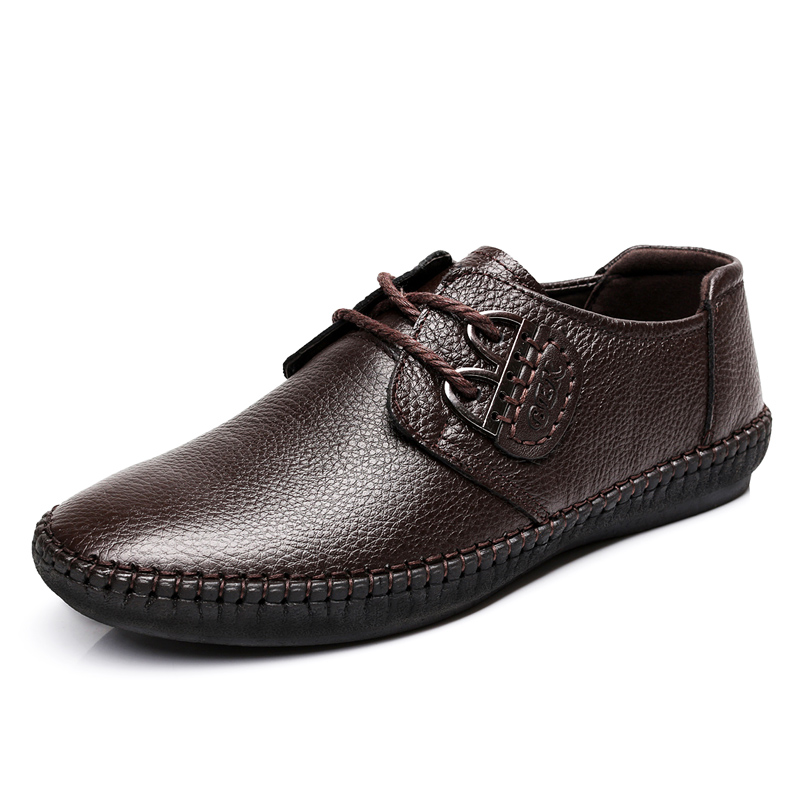 春秋季休闲皮鞋男纯手工缝线软底开车鞋单鞋潮流日常系带真皮男鞋